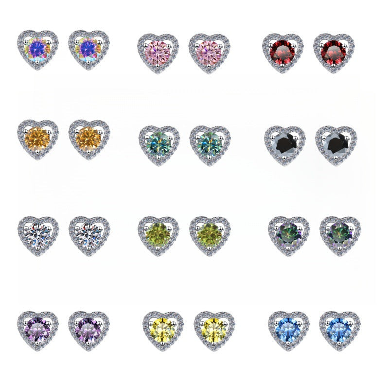 S925 Colorful Moissanite/CZ Heart Shape Halo Stud Earrings, 0.5ct D-Grade VVS Certificate, Hypoallergenic Sterling Silver Gift